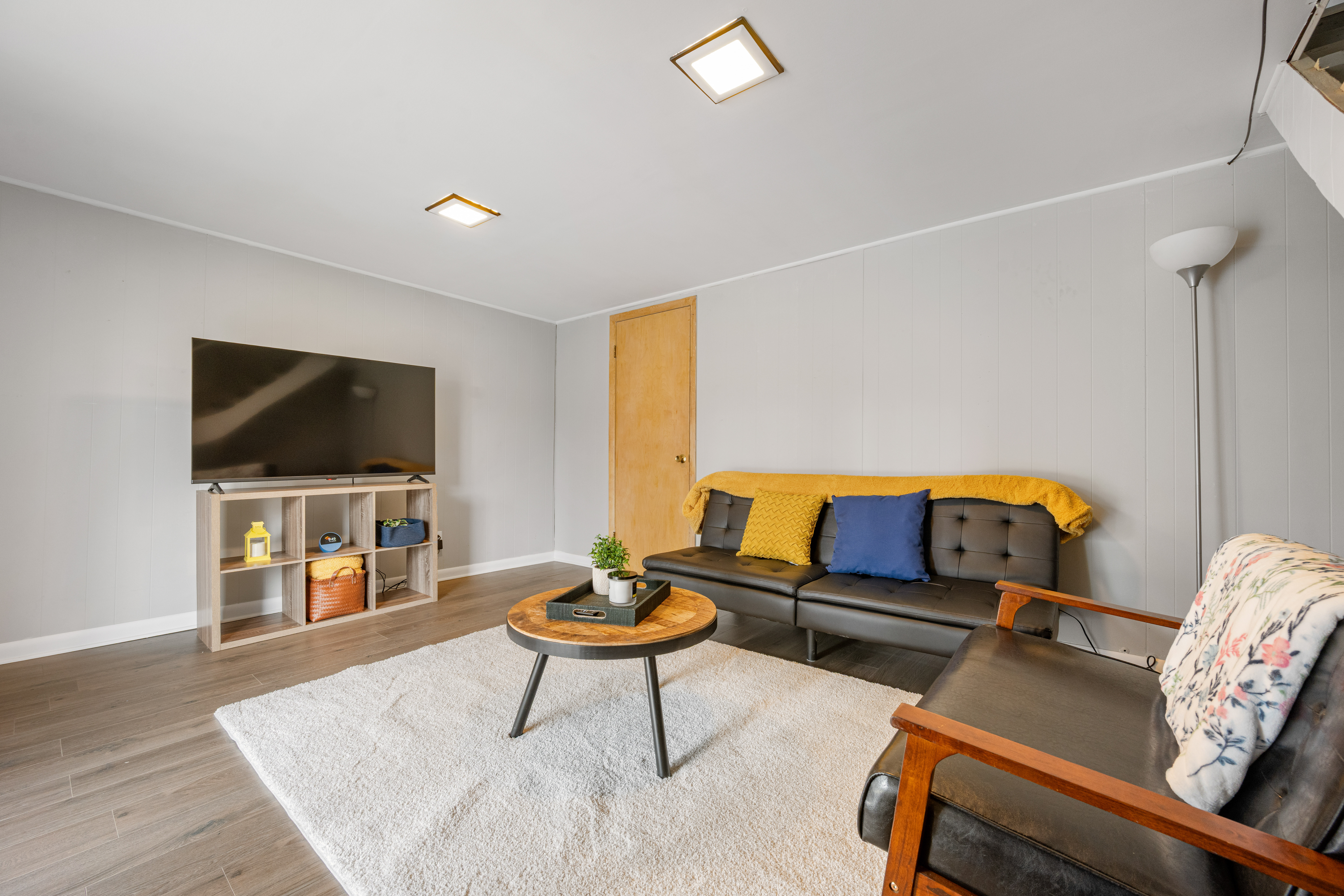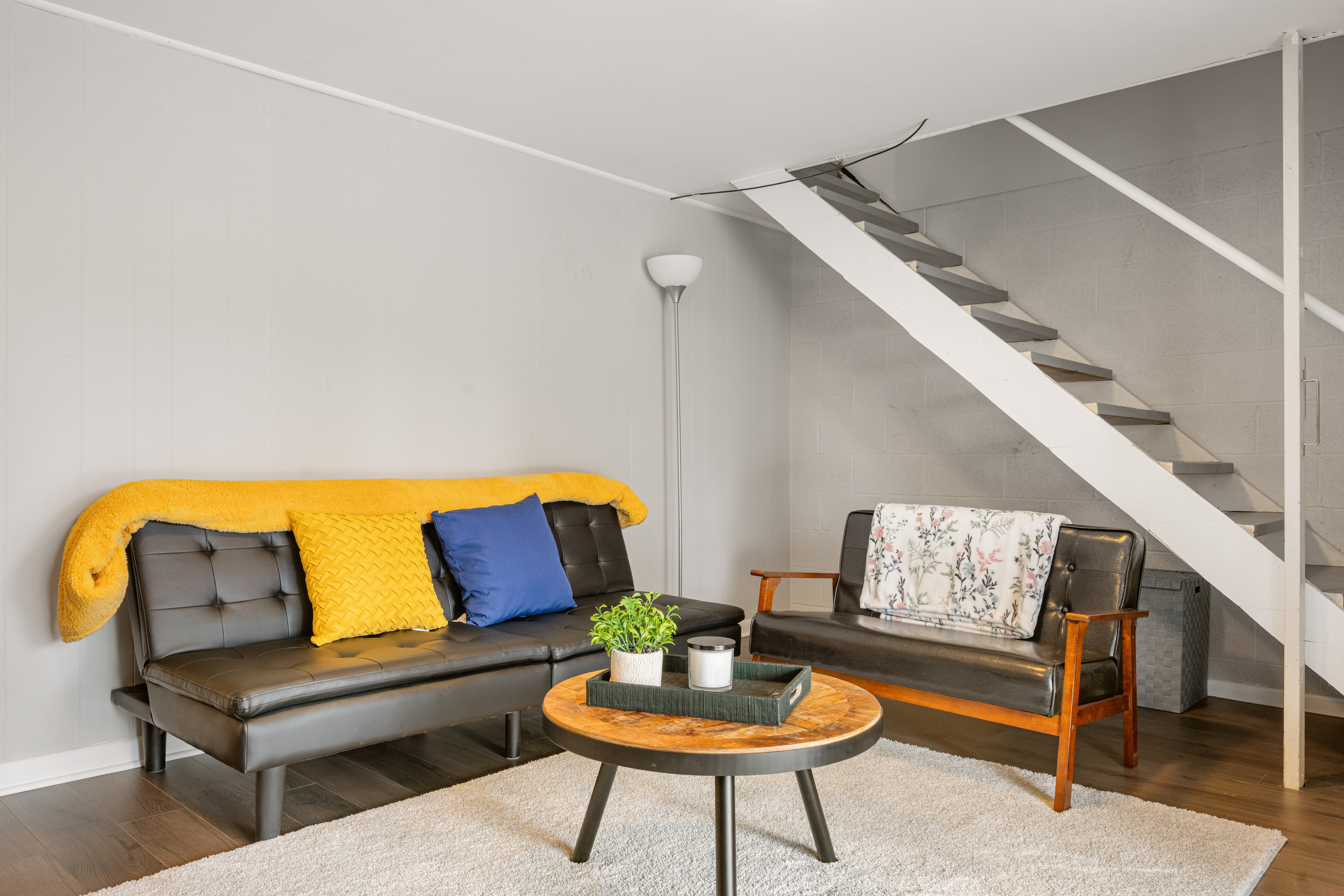We've put a lot of thought into making your stay comfortable and enjoyable. ⢠Cleanliness & Style: We pride ourselves on providing a meticulously clean space styled with a warm, contemporary flair. ⢠Laundry Location: Please be aware that the private washer and dryer are located in an unfinished section of the basement. ⢠Entertainment: With two separate living areas, both equipped with large TVs, our home is perfect for a group movie night or for giving everyone their own space to relax. ⢠Booking Requirements: To ensure a safe and seamless experience for everyone, please note that we require a quick ID verification, a signed short-term rental agreement, and a $300 credit card hold for a security deposit prior to check-in.