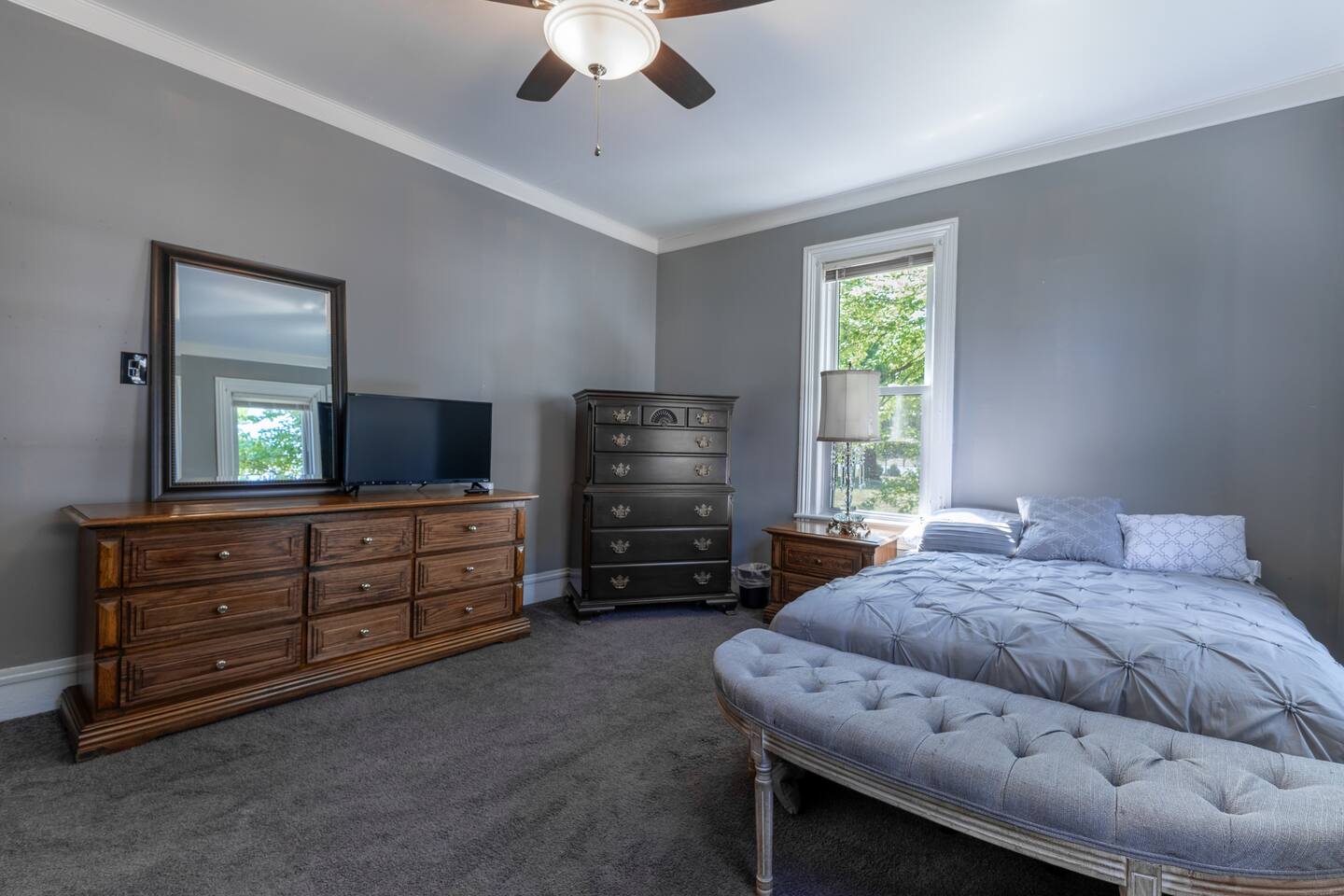 Discover Kling Haven, a spacious 5-bedroom, 1.5-bath home in Akron. Perfectly located just 3 blocks from the University of Akron and 1 mile from downtown, it's ideal for groups, traveling nurses, and university visitors. Enjoy modern comforts, a fully equipped kitchen, and a cozy sunroom in this stylish retreat that comfortably accommodates your entire group.