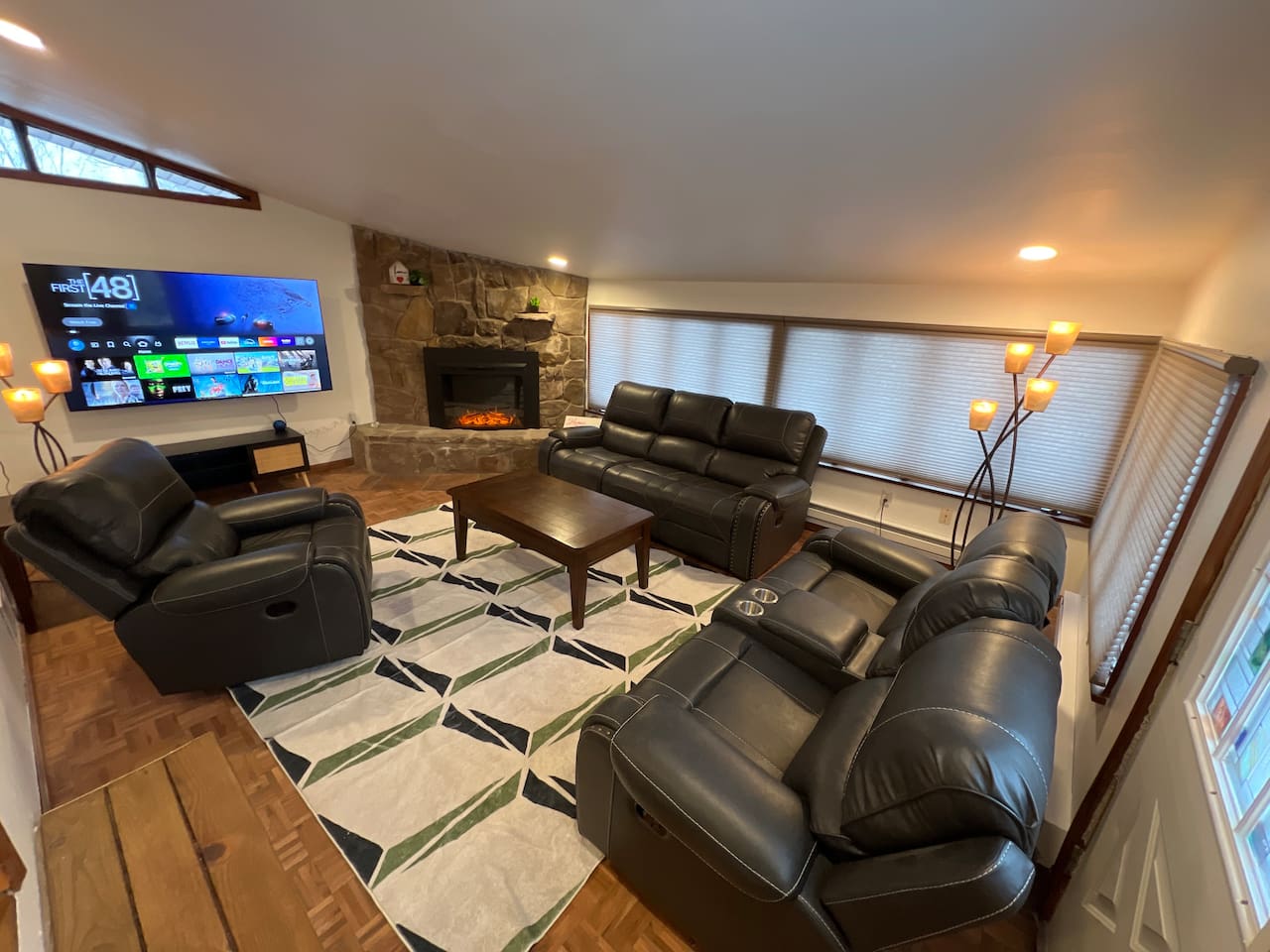 Welcome to Maple House, your quiet and spacious getaway in Vienna! This 3-bedroom, 3-bathroom home is a perfect, relaxing retreat with ample space for up to nine guests. The open-plan living area connects a welcoming dining room (seats six) to a modern, fully equipped kitchen. Kitchen features include: Stainless steel appliances Large island for prep and casual dining All the cookware you'll need for any meal A few steps down, the cozy family room invites you to unwind on plush leather couches by the warmth of the electric fireplace while watching the massive 75" TV. Large windows offer a beautiful view of the expansive backyard. Throughout the home, you'll meet 'Ziggy,' our AI Superhost! Alexa devices in the entryway, living room, and all bedrooms are ready to help you control the lights, find local restaurants, or answer questions about your stay. Sleeping Arrangements: Bedroom 1: One Queen bed and ample closet space. Bedroom 2: One Queen bed and one Twin bed. Bedroom 3: Two Queen beds, a 55" TV, and a private attached full bathroom. A second full bathroom is located in the hallway. The basement provides a third full bath, a laundry area, and a dedicated workspace perfect for remote work or study. Outside, your group will love the huge, fenced-in backyard on our one-acre lot. During the summer months, enjoy the above-ground pool and a dining porch perfect for outdoor meals.